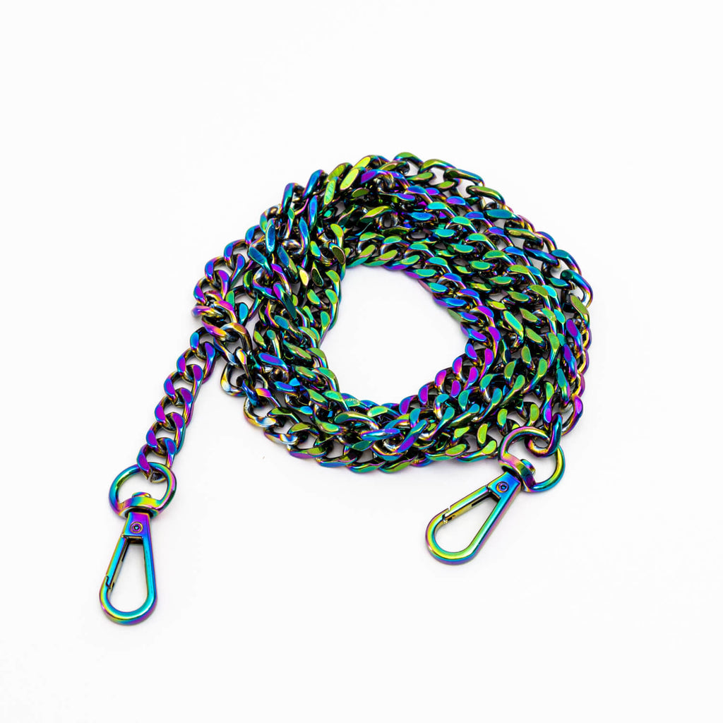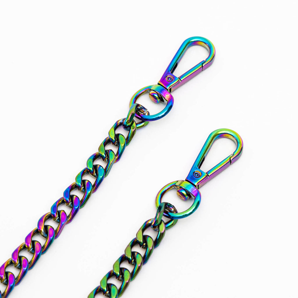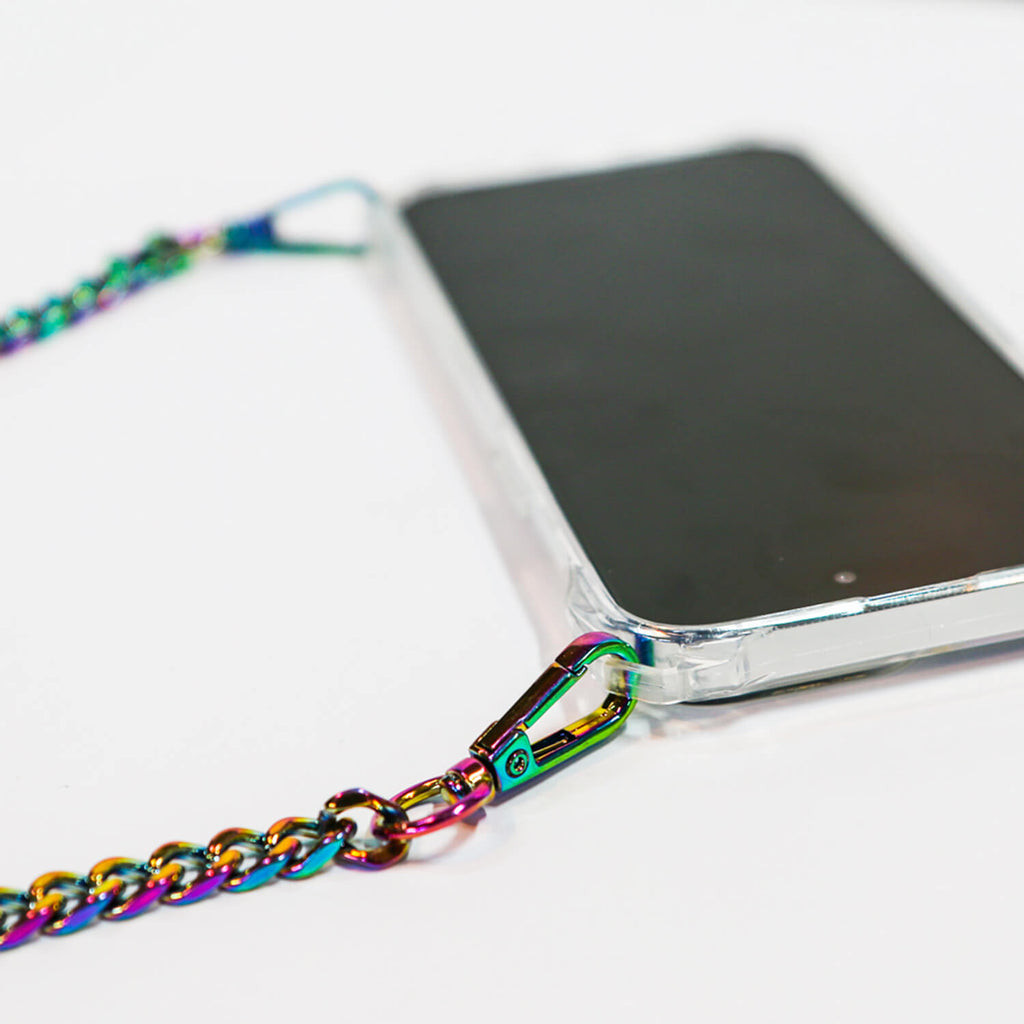 This clear and sleek case protects your phone and keeps you hands-free. The unique design has connectors at all four corners that not only provide extra drop-protection, but also allows you to attach your strap in any configuration. Included is our iridescent chain strap that catches the light and creates a beautiful rainbow effect that is sure to turn heads. Made from high-quality materials, this shoulder strap is sturdy and durable to withstand the wear and tear of everyday use. The crossbody strap easily clips on and off giving you the flexibility of using it as a standalone or crossbody case.