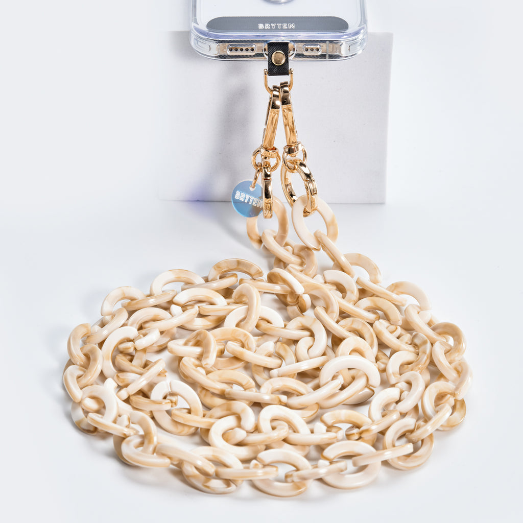 Bryten Paige Crossbody Chain Link Phone Strap in Sand Dune Beige