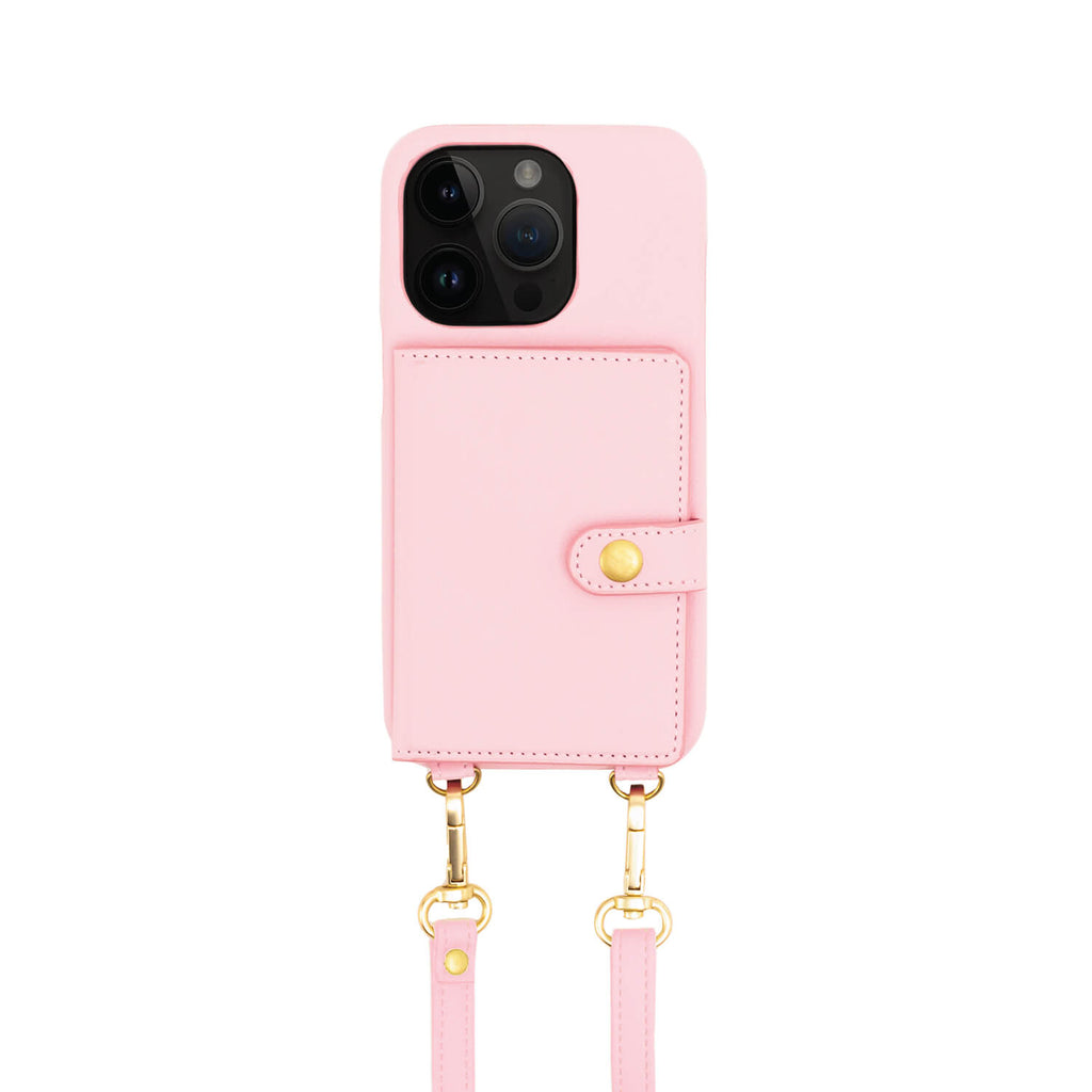 Keep your phone safe always within reach with this elegant vegan leather case. Now you can be hands-free and on-the-go with just your necessities. The built-in wallet snaps closed securely and designed with two slots for cards. The matching adjustable crossbody strap easily clips on and off giving you the flexibility to use it as a standalone or crossbody case. Comes in a variety of colors to coordinate with your ever-changing style. Being on the move with your phone has never been easier.