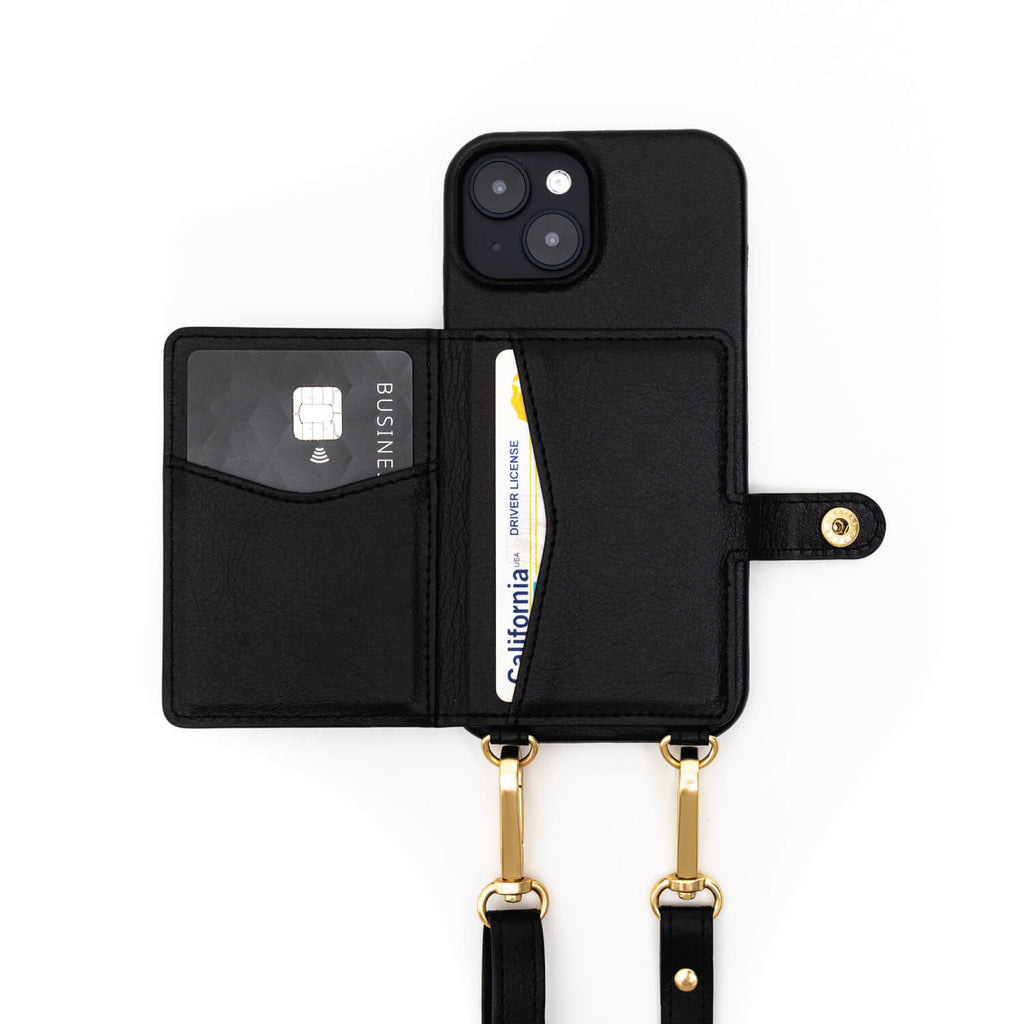 Silverlake Vegan Leather Wallet Crossbody Phone Case for iPhone 15 - Black