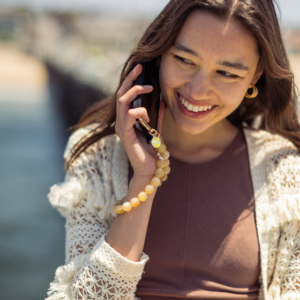Bryten Fiona Wristlet Faceted Bead Phone Strap in Raw Citrine Beige