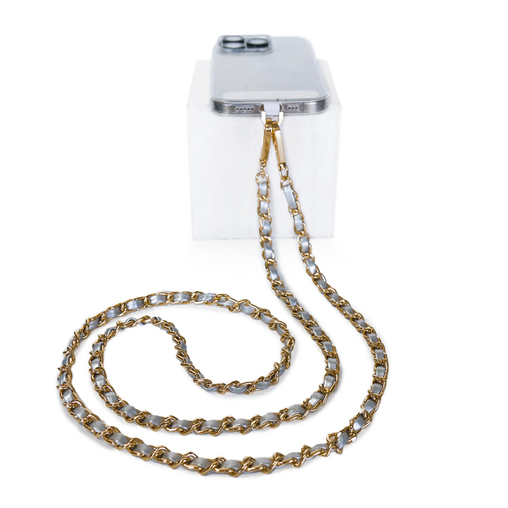 Bryten Vegan Leather Silver Chain Crossbody Phone Strap with 2 Tethers in Metallic Silver